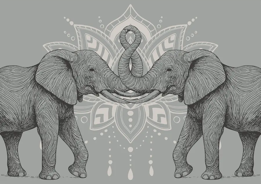 Fotobehang Twee olifanten met hun slurven tegen elkaar aan