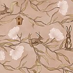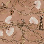 Fotobehang Behang met konijnen en bloemen