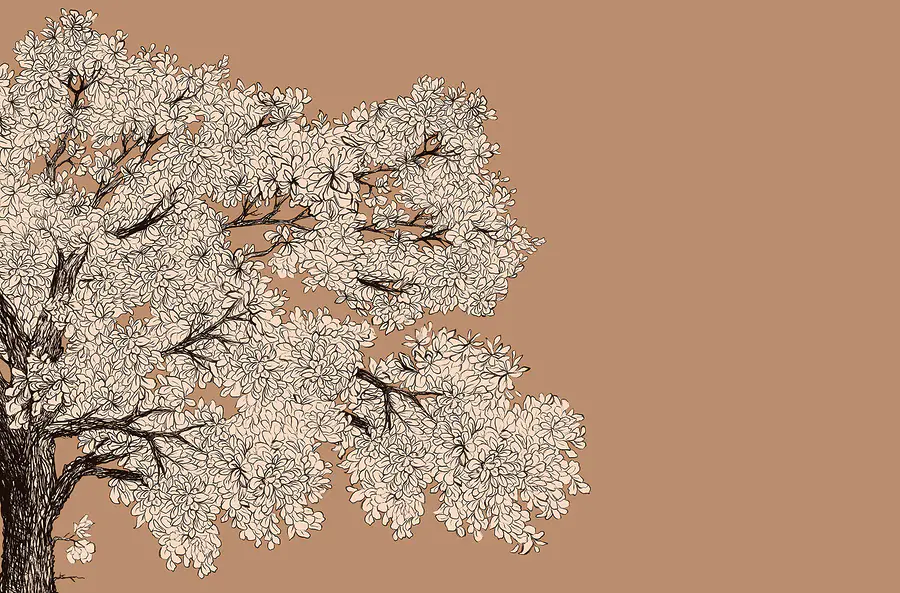 Fotobehang Boom met witte bloemen