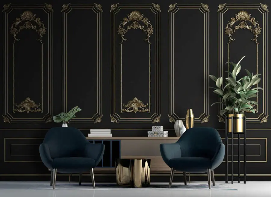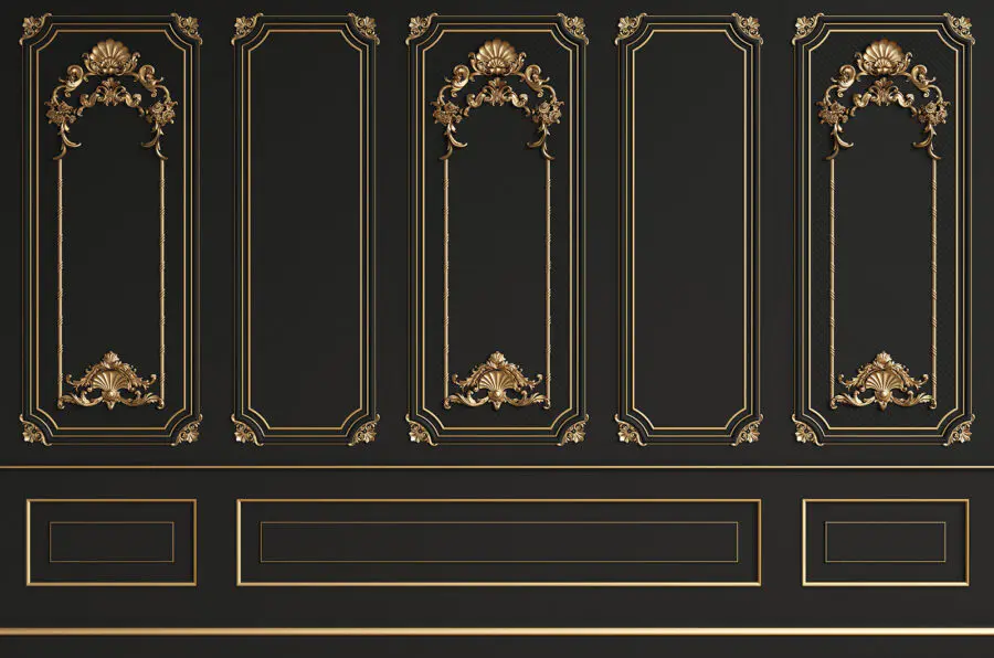 Fotobehang Elegante zwarte panelen met sierlijke accenten