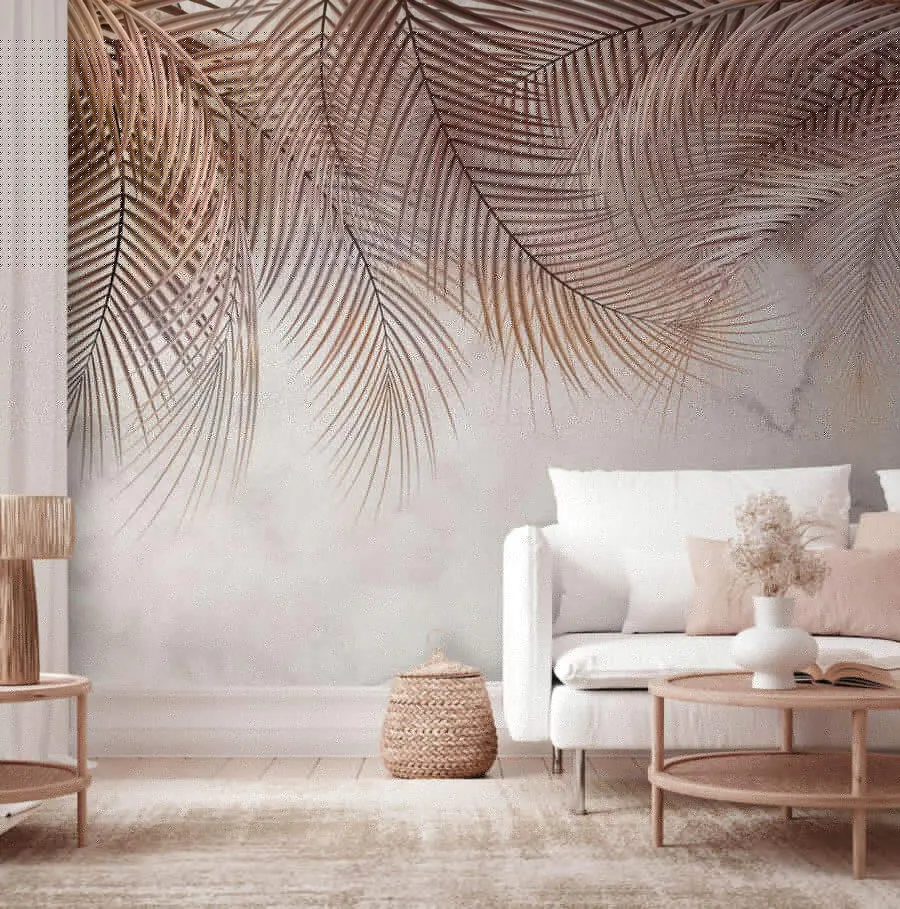 16.08 €8.85 €Fotobehang Witte en bruine achtergrond met palmbladeren