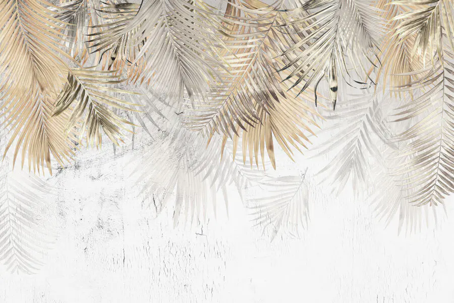 Fotobehang Elegante palmbladeren op een gestructureerde achtergrond