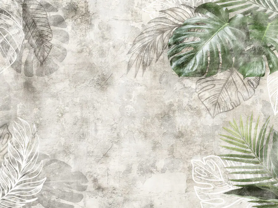Fotobehang Elegante bladeren op gestructureerde achtergrond