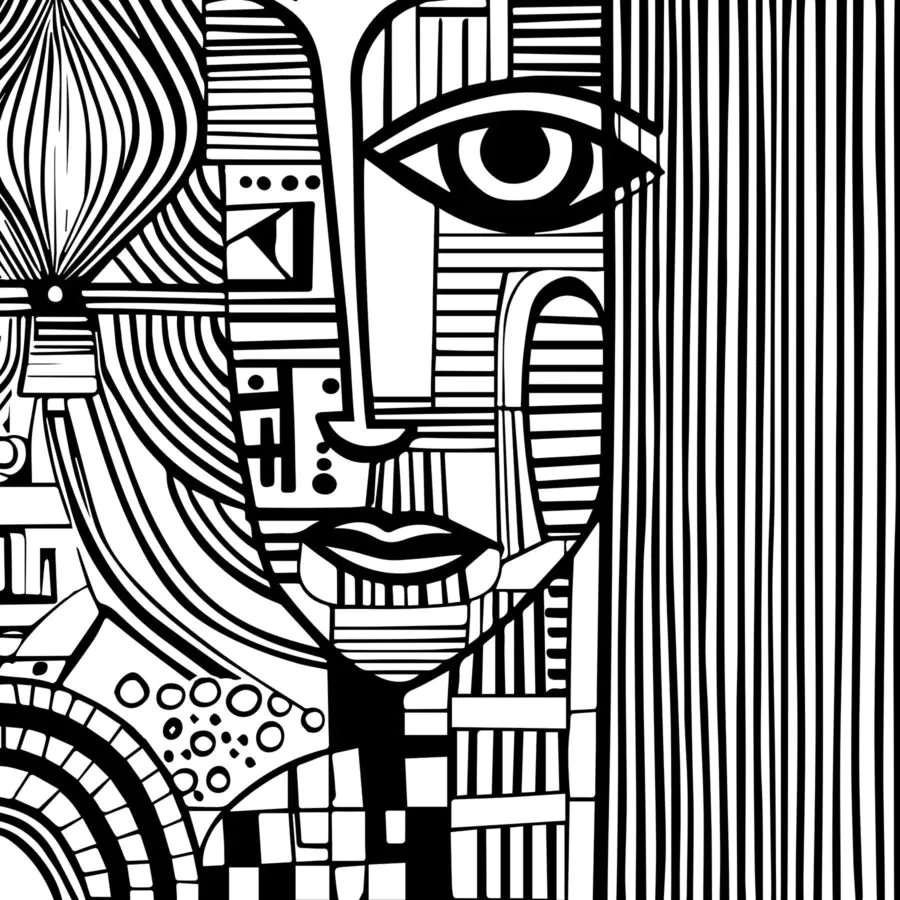 Fotobehang Een zwart-wit tekening van een vrouw’s gezicht