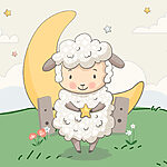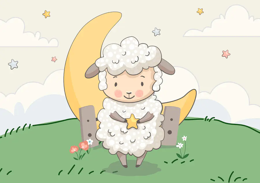 Fotobehang Spotprent van een schaap met een ster