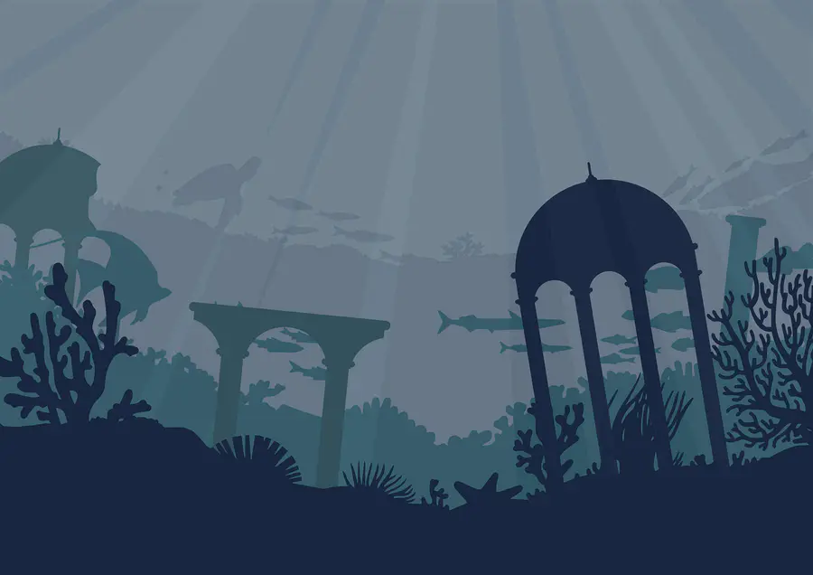 Fotobehang Silhouet van een gebouw en zeeplanten