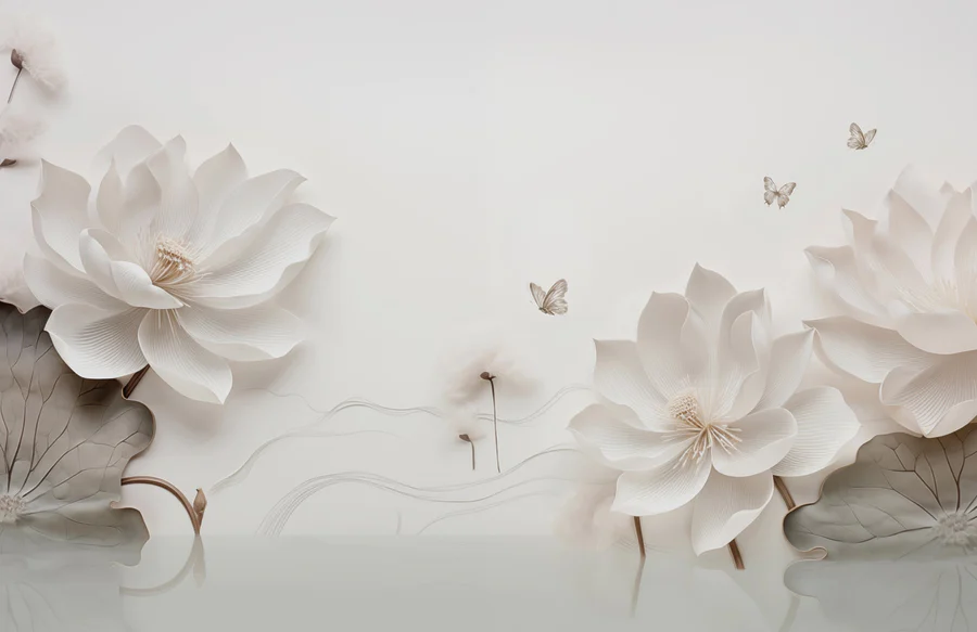 Verander elke kamer in een serene ontsnapping met deze muurschildering met delicate witte papieren bloemen en fladderende vlinders. Stel je voor dat je elke dag wakker wordt en begroet wordt door bloemen elegantie - het is alsof je een tuin hebt die nooit verwelkt. Die vlinders? Ze lijken rond te dansen en voegen een grillig tintje toe. Dit ontwerp is perfect voor een rustig leeshoekje of een speelse kinderkamer waar dromen een vlucht nemen. Het is het soort muurschildering dat kalmte uitstraalt en je uitnodigt om wat dieper adem te halen. Geloof me, wie hier binnenstapt zal de vredige sfeer meteen voelen. Dus waarom zou je je muren niet een mooi verhaal laten vertellen?