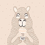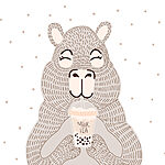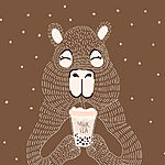Fotobehang Beeldverhaal van een beer met een bubble tea