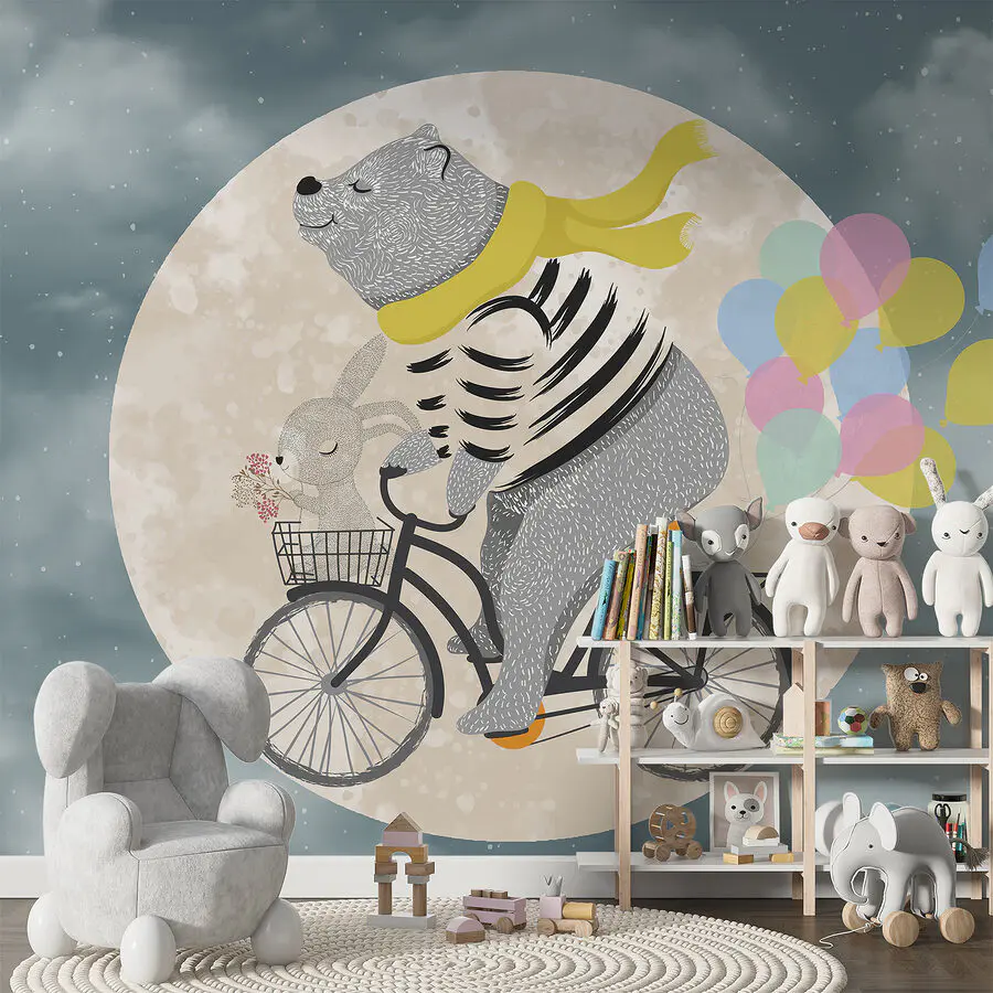 15.51 €9.30 €Fotobehang Een cartoon van dieren in een heteluchtballon