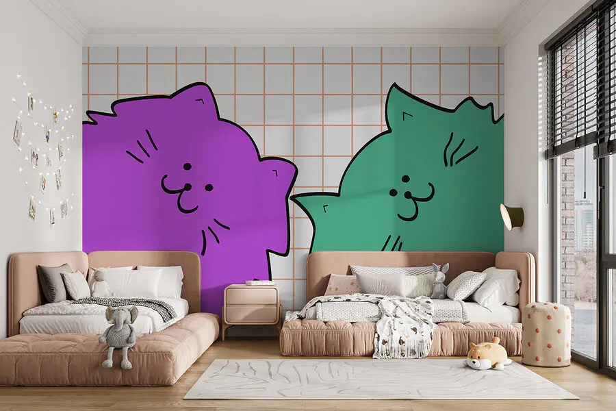 Fotobehang Paarse en groene kat