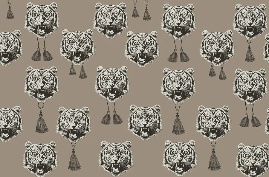 Fotobehang Patroon van tijgerkoppen met kwastjes