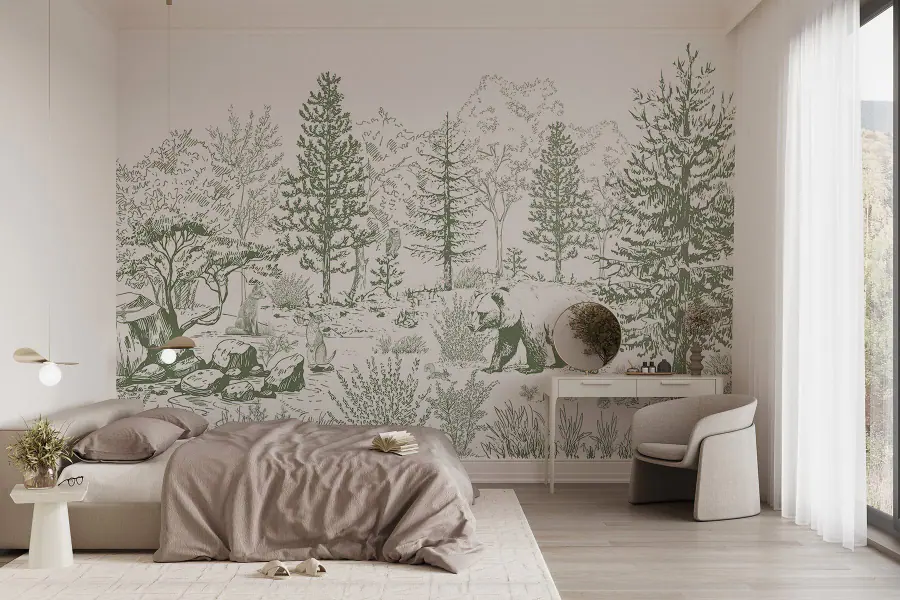 Fotobehang Tekening van een beer in een bos