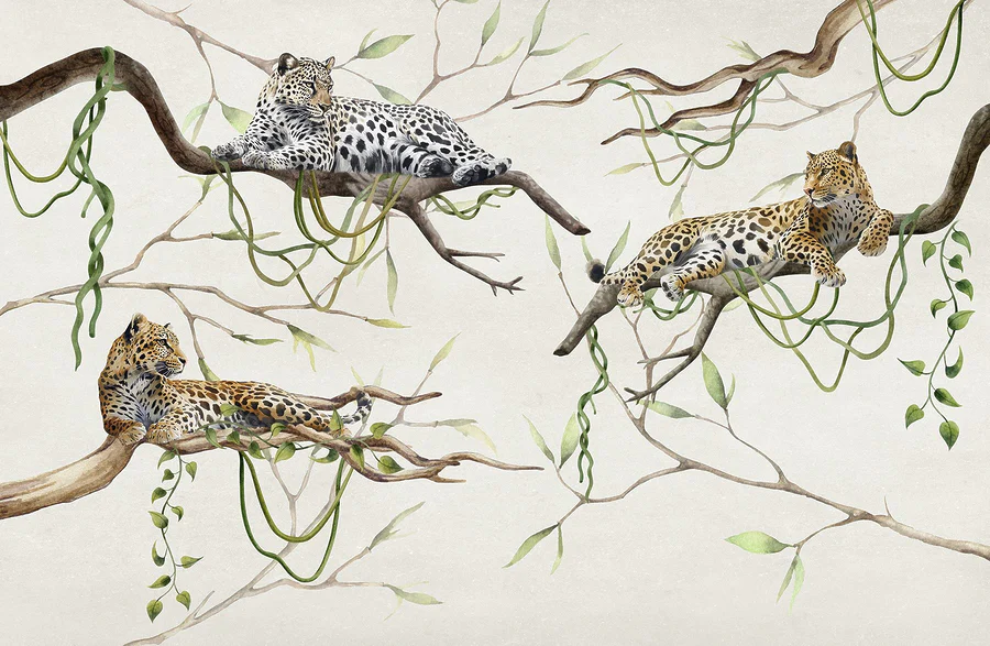 16.08 €8.85 €Fotobehang Schilderij van een groep cheeta’s op een boomtak