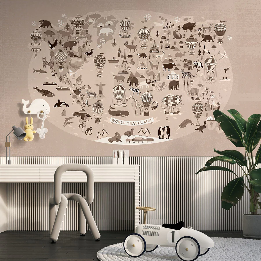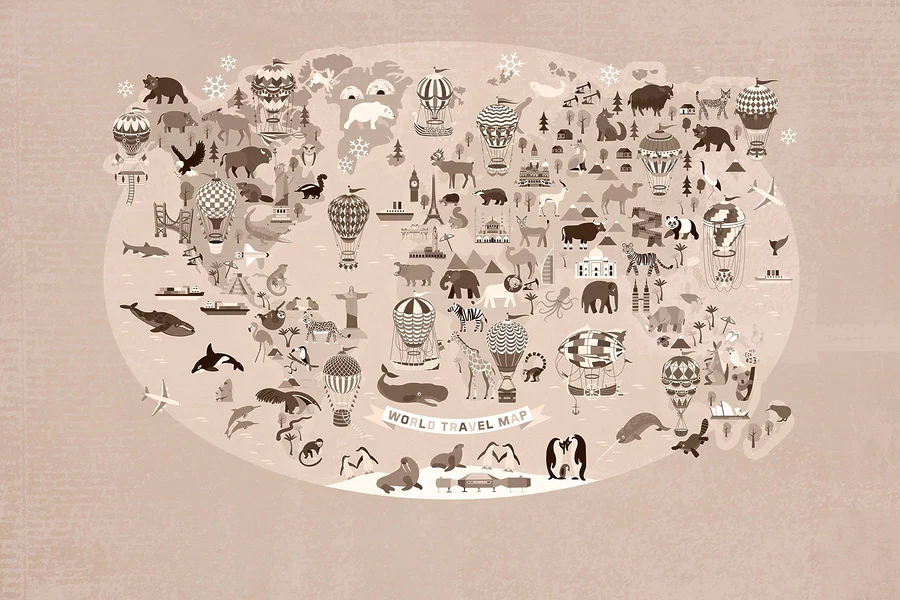 15.51 €9.30 €Fotobehang Een wereldkaart met dieren