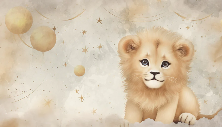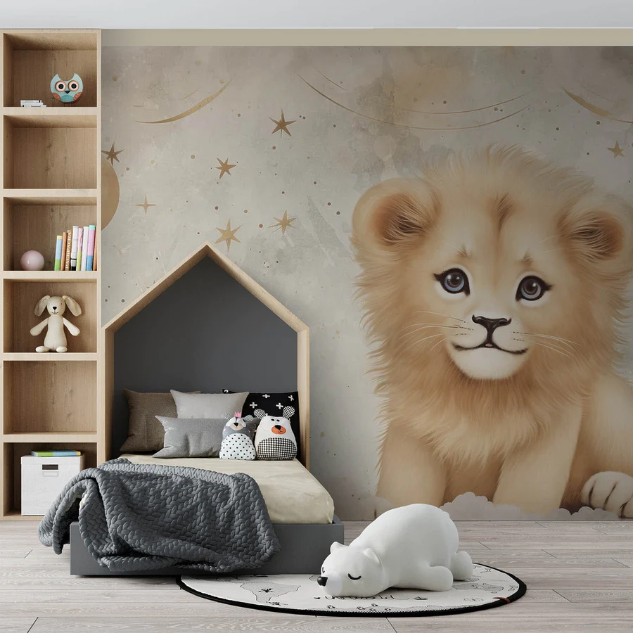 Fotobehang Leeuwenwelp in de lucht