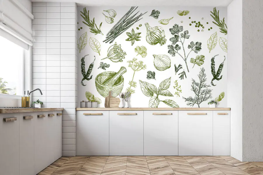 16.31 €9.79 €Fotobehang Delicaat groen op een witte achtergrond