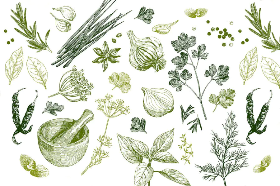 Fotobehang Een verzameling kruiden en specerijen