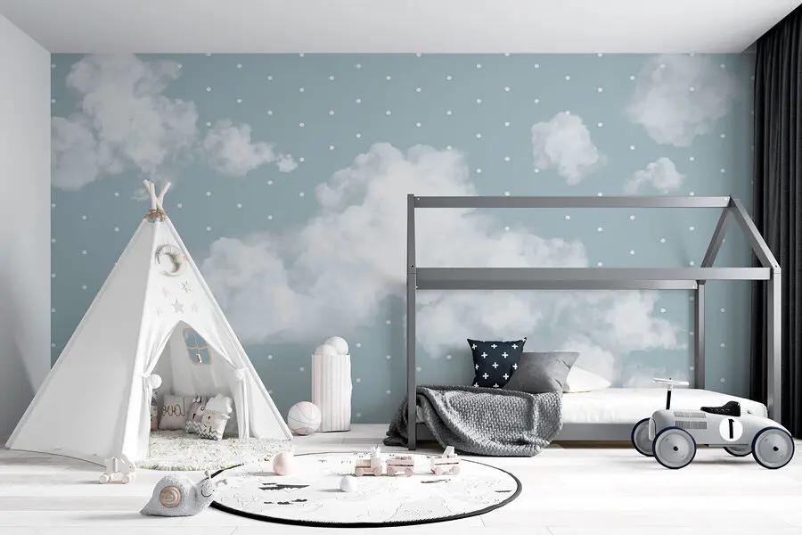 16.08 €8.85 €Fotobehang Een blauwe lucht met wolken en sterren