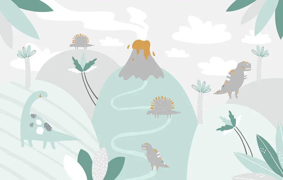 15.51 €9.30 €Fotobehang Een tekening van dinosaurussen en bergen