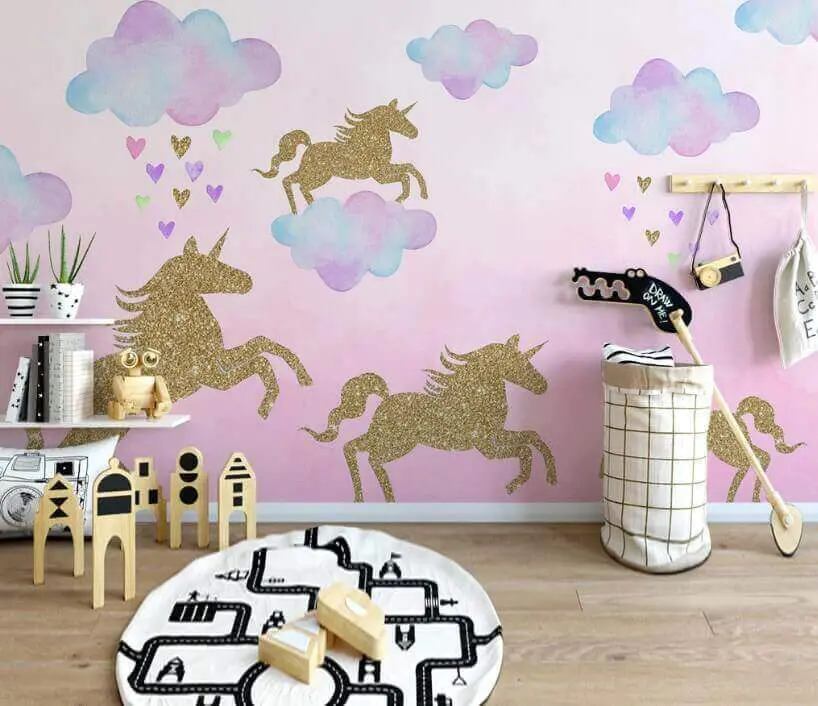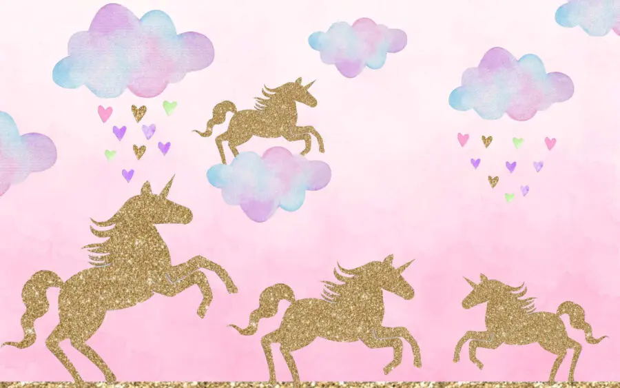 15.51 €9.30 €Fotobehang Een cartoon eenhoorns en een regenboog
