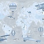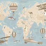 16.31 €9.79 €Fotobehang Een wereldkaart met vliegtuigen en heteluchtballonnen