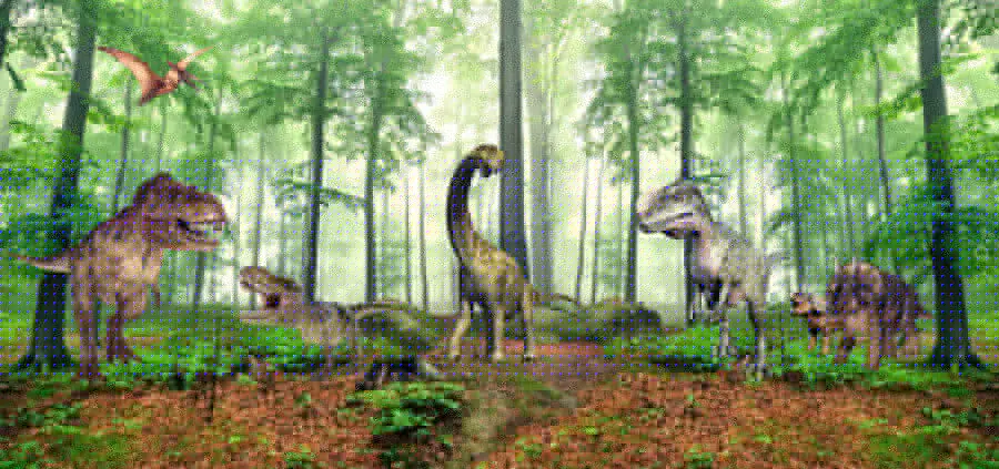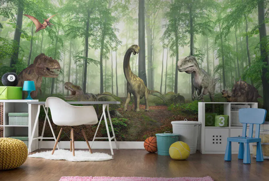 16.08 €8.85 €Fotobehang Groep dinosaurussen in een bos
