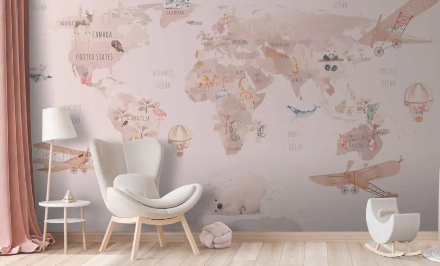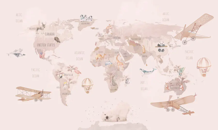 16.08 €8.85 €Fotobehang Wereldkaart met dieren en vogels