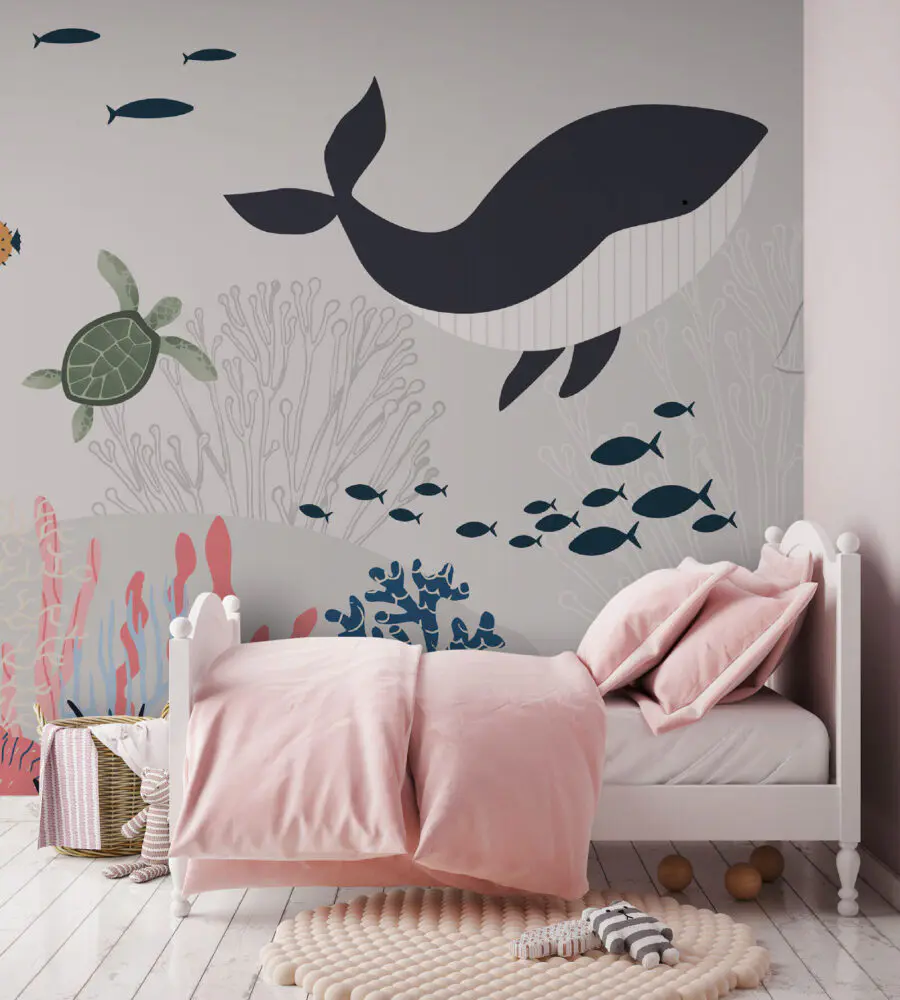 Fotobehang Walvis en vissen zwemmen in de oceaan