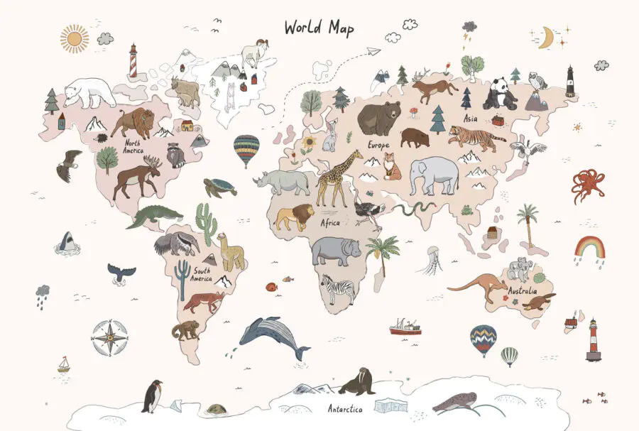 15.51 €9.30 €Fotobehang Wereldkaart met dieren en vogels