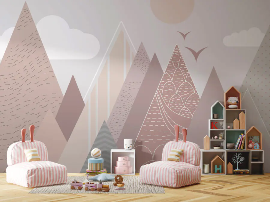 Fotobehang Landschap van bergen en vogels