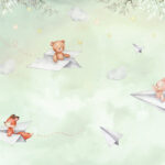 Fotobehang Papieren vliegtuigjes en teddyberen