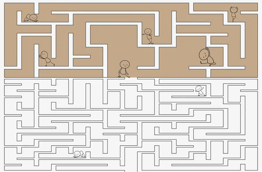 Fotobehang Doolhofspel met mensen die over de muur lopen