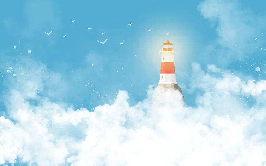 Fotobehang Vuurtoren in de wolken