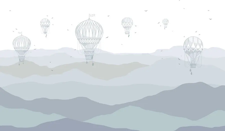 15.51 €9.30 €Fotobehang Groep heteluchtballonnen in de lucht boven bergen