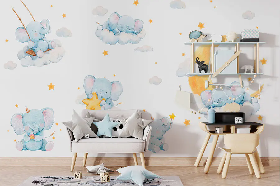 15.51 €9.30 €Fotobehang Beeldverhaal olifant en maan in de lucht