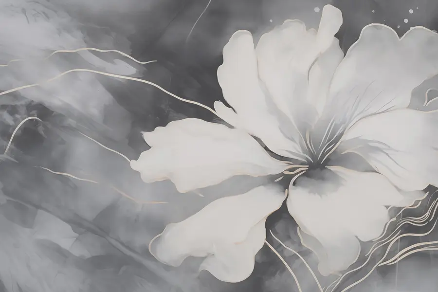 Fotobehang Witte bloem op een zwart-witte achtergrond