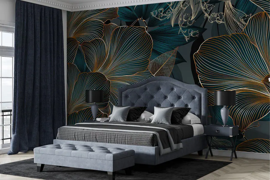 Fotobehang Elegant bloemmotief in donkere tinten