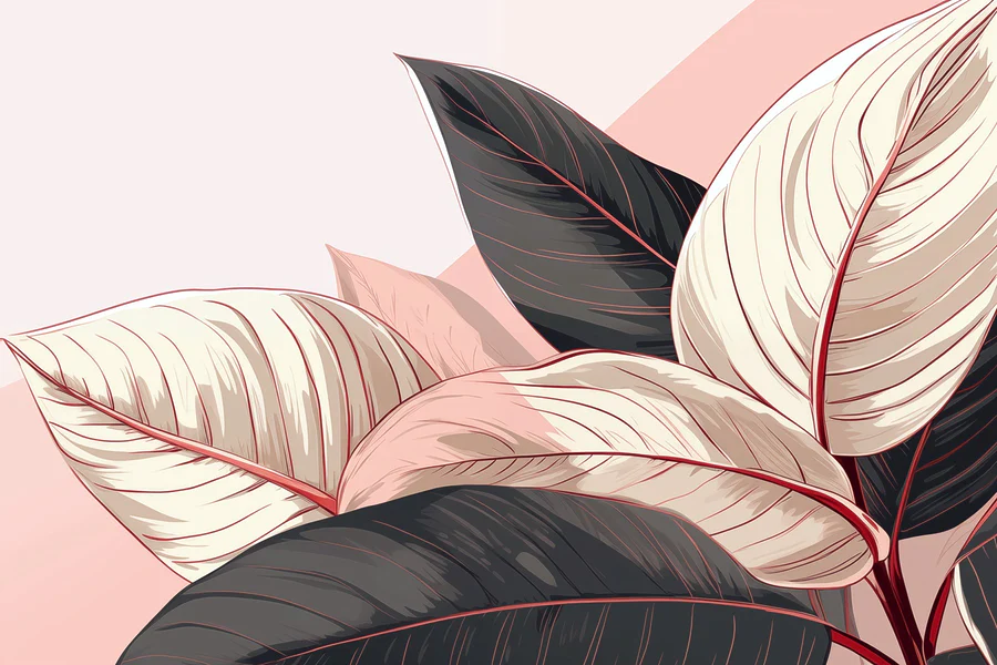 Fotobehang Weelderige bladeren in zachte pasteltinten