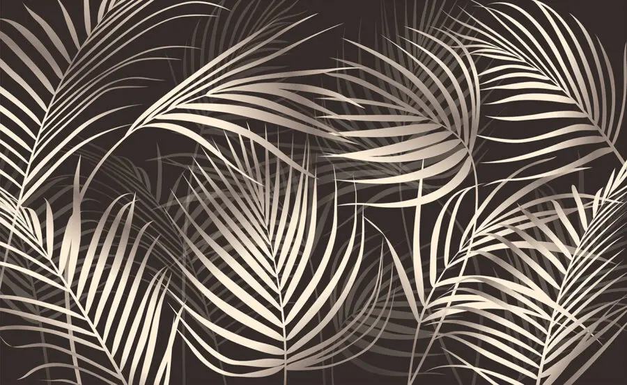 Fotobehang Elegante palmbladeren op een donkere achtergrond