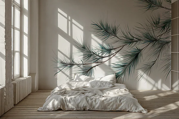 16.31 €9.79 €Fotobehang Fijne dennentakken tegen witte achtergrond
