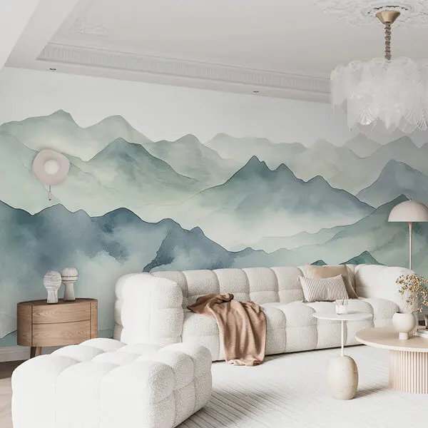 16.31 €9.79 €Fotobehang Een aquarel van bergen en mist