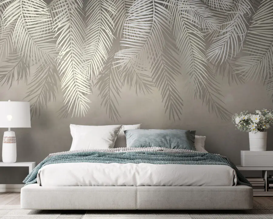 15.51 €9.30 €Fotobehang Witte bladeren op een grijze achtergrond