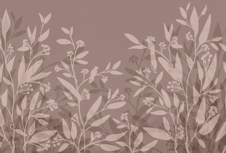 Fotobehang Zachte bladsilhouetten op gedempte achtergrond