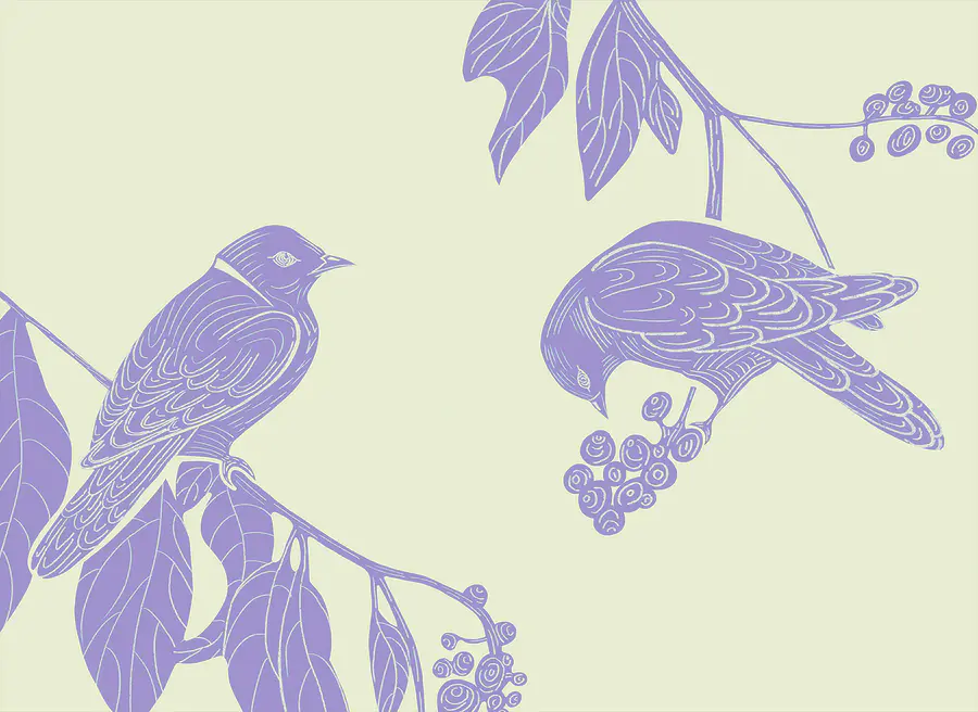 Fotobehang Tekening van vogels op een tak