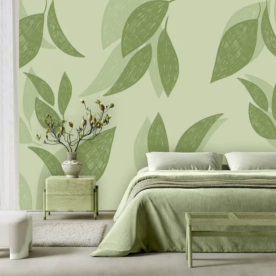 Haal de buitenlucht naar binnen met deze betoverende muurschildering met een speels patroon van groene bladeren. Stel je voor hoe deze muurschildering een gezellige woonruimte opfleurt of als een mooie achtergrond voor enkele kamerplanten dient. Het weelderige, bladrijke ontwerp voegt een frisse toets toe, waardoor elke kamer aanvoelt als een serene ontsnapping. Stel je voor dat je hier 's ochtends van je koffie nipt, omringd door de schoonheid van de natuur, zelfs als het enige 'wildleven' die ene plant is die je probeert in leven te houden. Perfect voor een moderne sfeer, het is moeilijk om niet te glimlachen als deze kleine blaadjes over de muur dansen en de buitenwereld binnenhalen. Een eenvoudige manier om elke ruimte tot leven te brengen, het zou je kunnen inspireren om wat meer groen in je leven te brengen. Wie had gedacht dat decoreren zo verfrissend kon zijn?