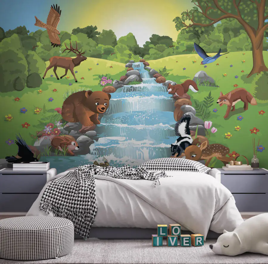 15.51 €9.30 €Fotobehang Waterval en vogels in een bos