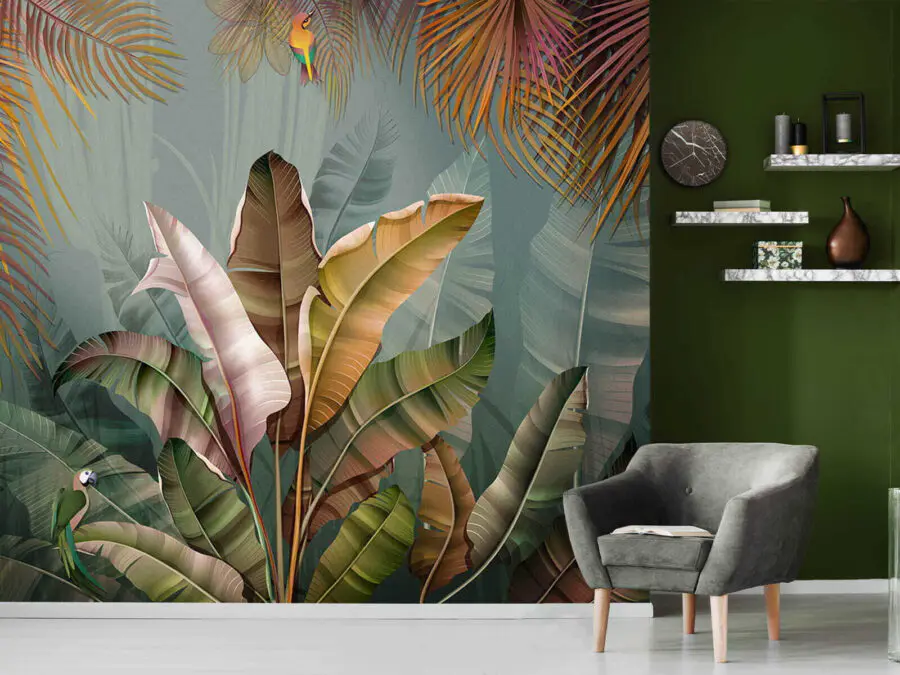 Fotobehang Tropisch gebladerte met levendige kleuren