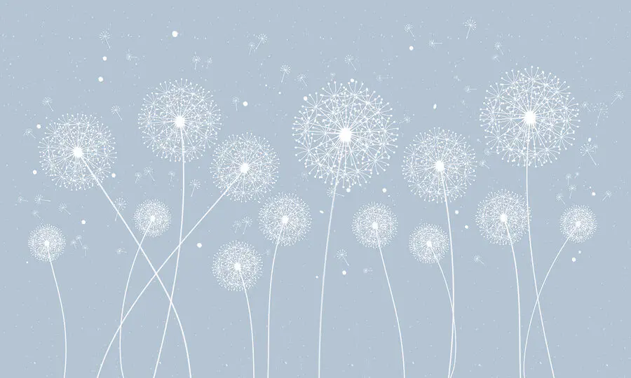 Fotobehang Een witte paardenbloem op een blauwe achtergrond