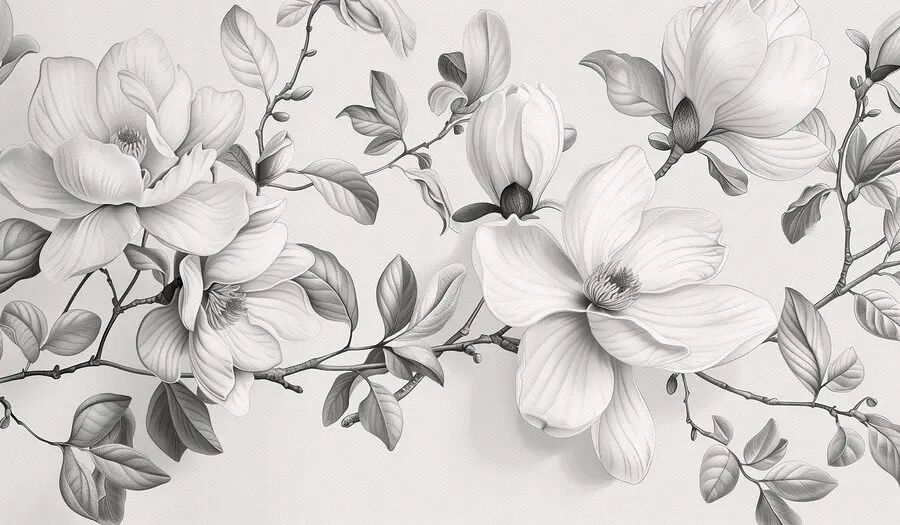 15.51 €9.30 €Fotobehang Witte bladeren op een grijze achtergrond