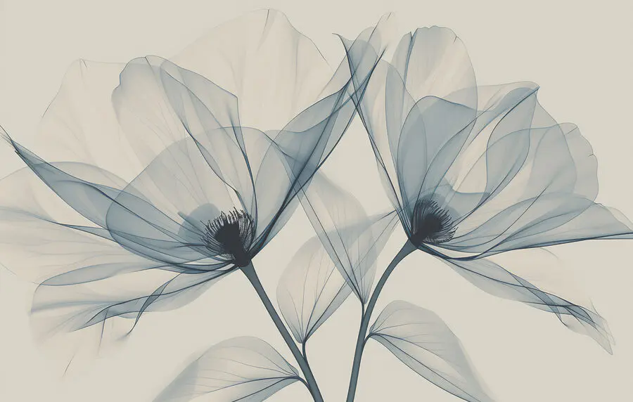 16.31 €9.79 €Fotobehang Transparante bloemen op een witte achtergrond